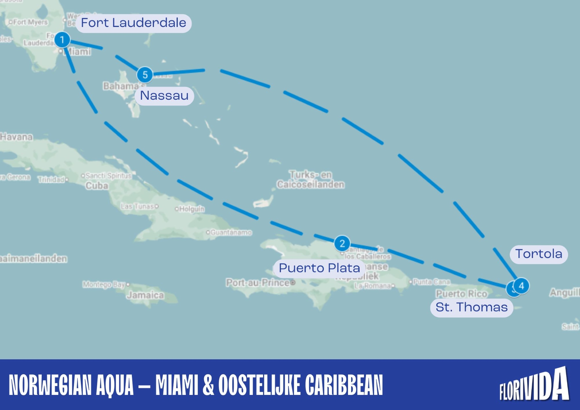 The cruise departs from Fort Lauderdale, near Miami. You fly to Miami first and then travel to the cruise terminal on your own. This makes it an ideal cruise from Miami in combination with a short stay beforehand.